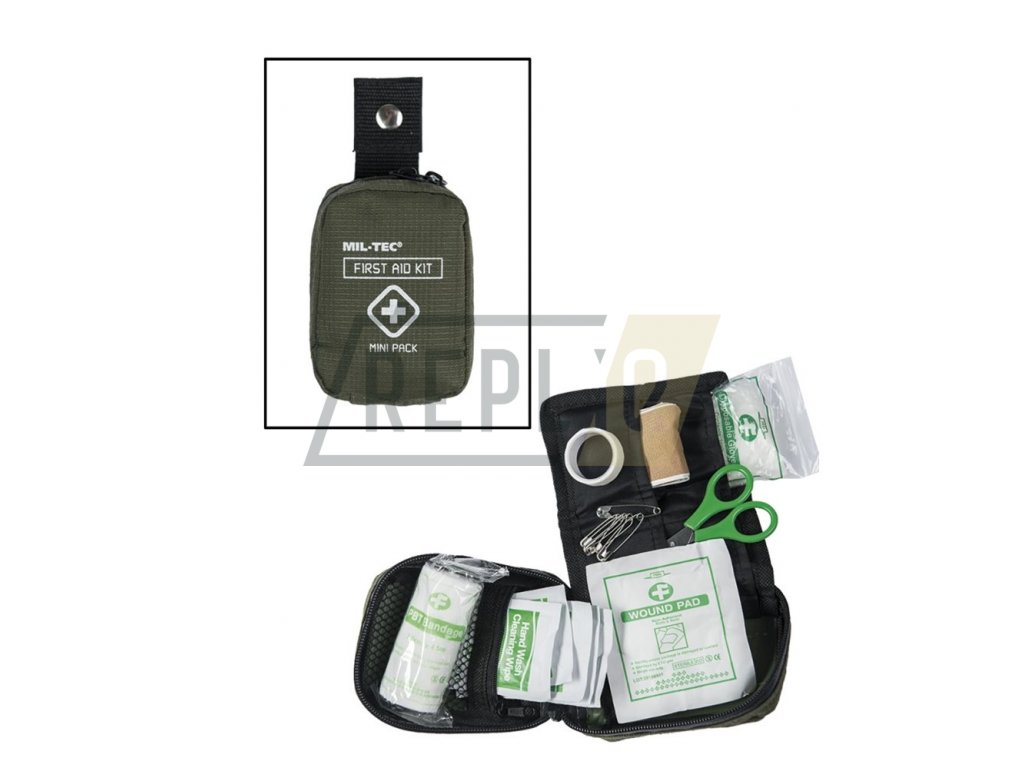 Malá vybavená lékárnička první pomoci. Kromě samotné výbavy obsahuje několik přihrádek.