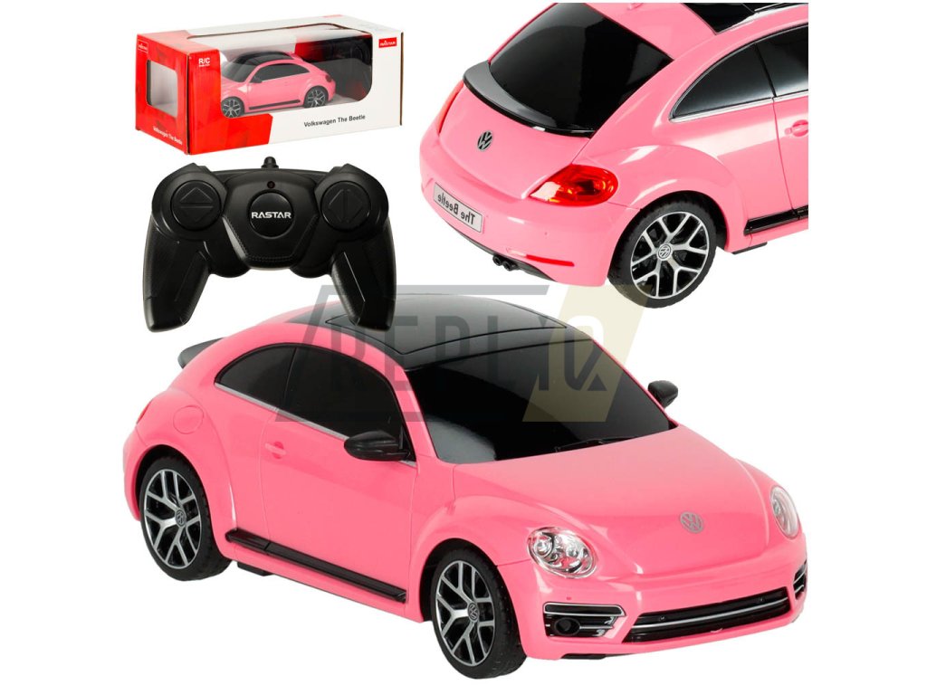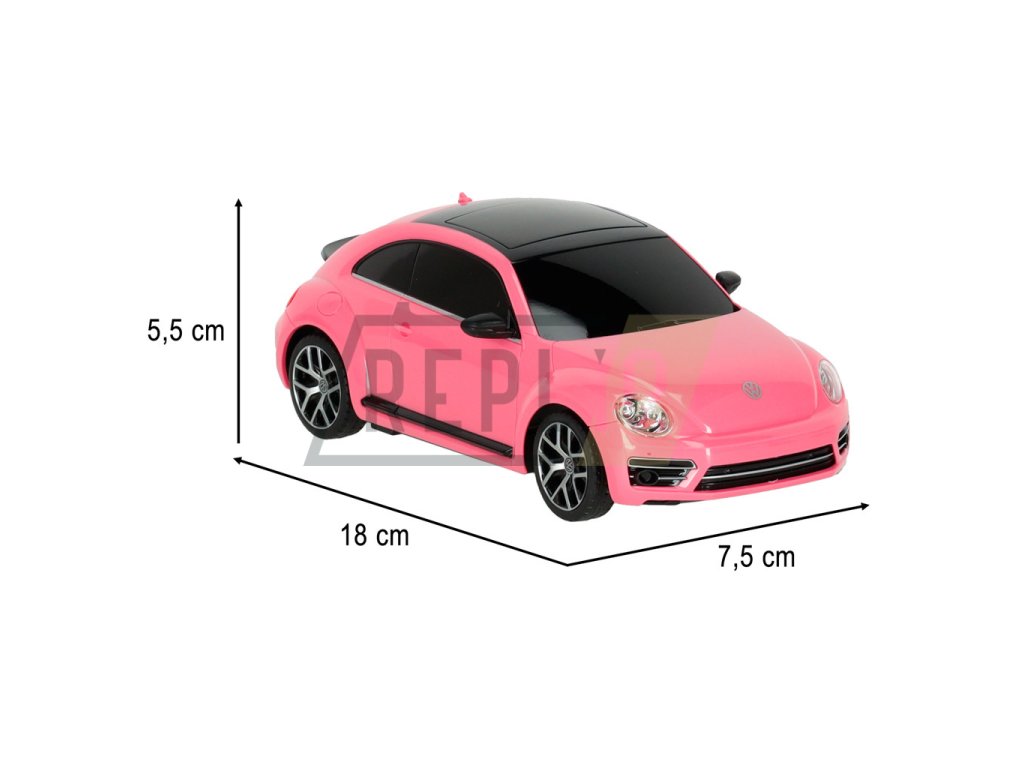 Dálkově ovládané auto Rastar 76200 Volkswagen Beetle v měřítku 1:24 je malý model ikonického vozu v růžové barvě. Auto má charakteristické prvky původního Brouka, jako jsou zaoblené linie karoserie, logo Volkswagenu a poutavá barva. Autíčko má rozměry 18 x 7,5 x 5,5 cm a má gumové pneumatiky o průměru 2,5 cm , které poskytují dobrou přilnavost na různých površích. K ovládání autíčka se používá ovladač, který umožňuje plynulý pohyb vozidla ve čtyřech směrech.