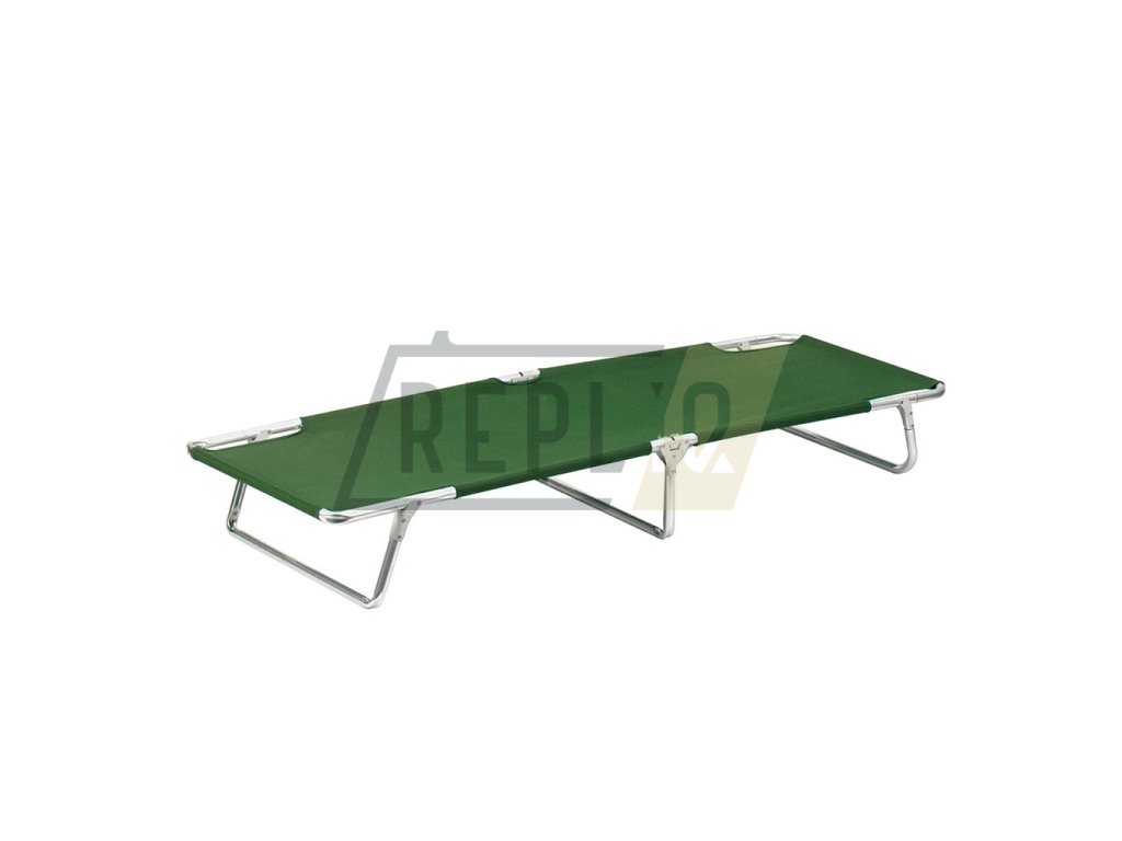 Skládací hliníkové lehátko s polyesterovým potahem. Rozměry: 190 x 61 x 25 cm, max. nosnost: 120 kg.
