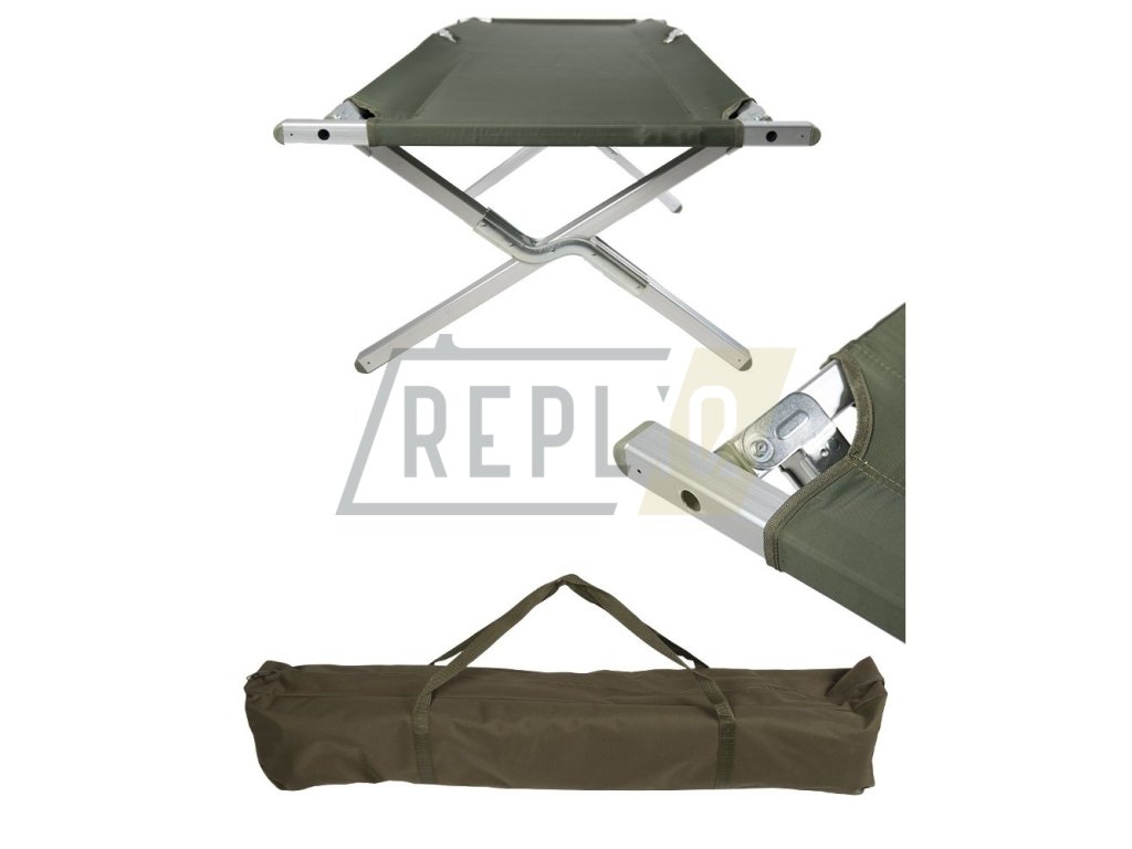 - V rozloženém stavu má polní lůžko 6 opěrných nožiček