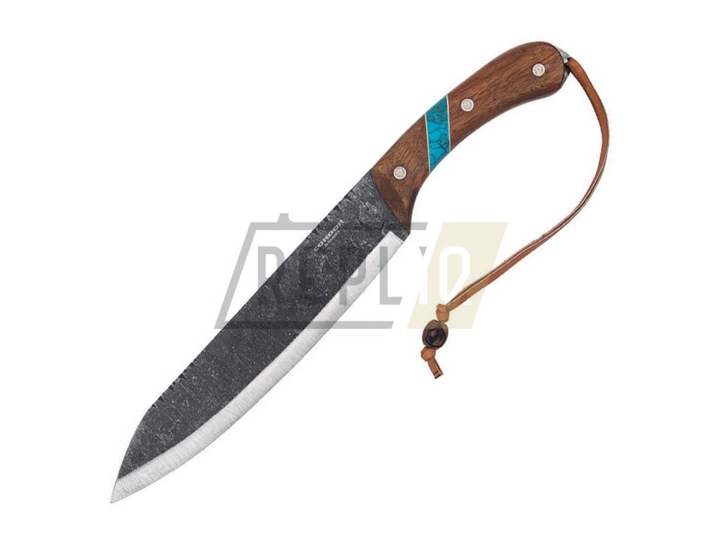 Čepel mačety s full tang konstrukcí je vyrobená z vysoko uhlíkové oceli 1075, přirozeného vzhledu, bez dodatečného leštění.