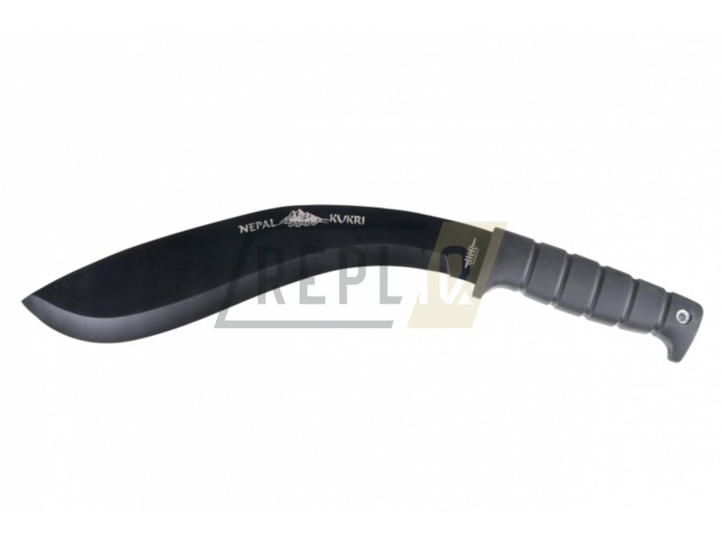 Mačeta typu kukri od španělského výrobce kvalitních nožů Joker s označením Nepal Kukri JKR743.Pevná, 29,5 cm dlouhá full-tang čepel se zahnutým ostřím je vyrobena z nerezové oceli 3Cr13MoV a je dodatečně chráněna vůči nečistotám a vlhkosti díky černé povrchové úpravě.