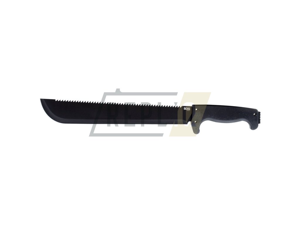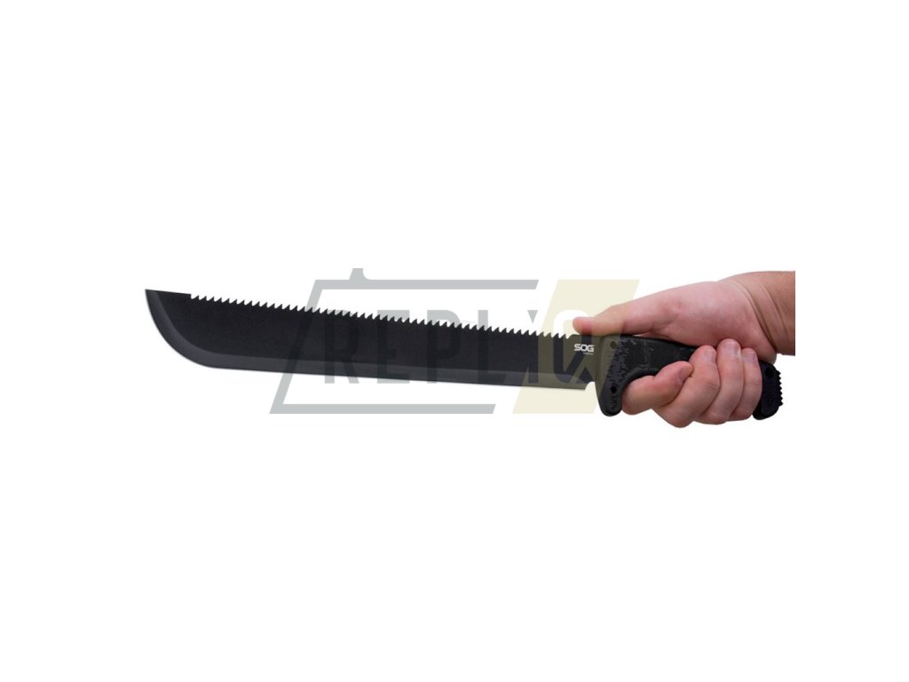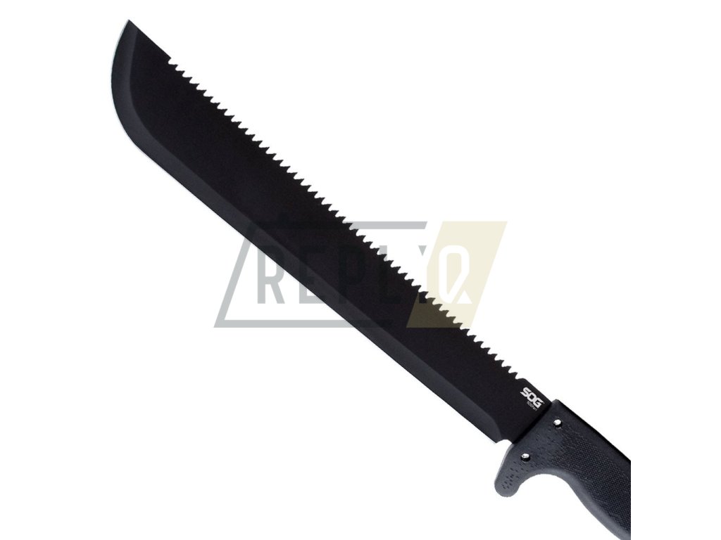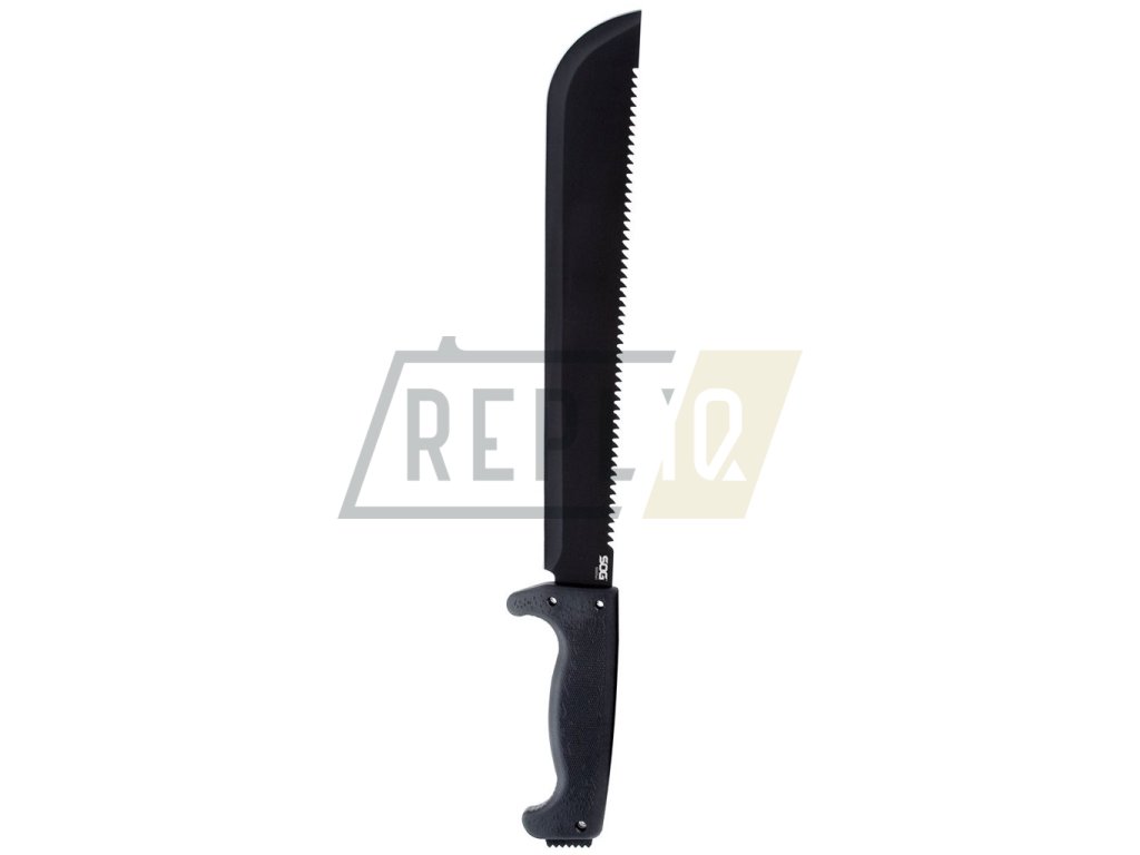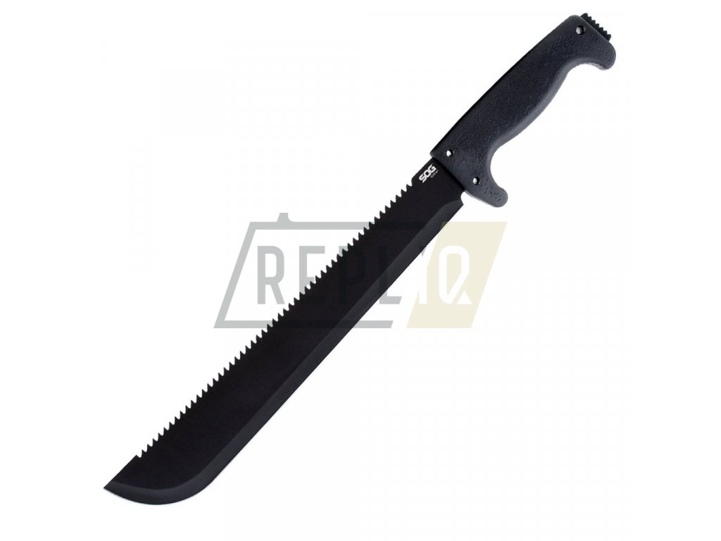 Praktická mačeta s hladkým ostřím o délce 33 cm. Černěná čepel je vyrobená z nerezové oceli 3Cr13 a na jejím hřbetě naleznete výraznou pilu. Rukojeť je vyrobená z materiálu Kraton a je tvarovaná tak, aby poskytla optimální úchop v jakékoli situaci. Pro zvýšení bezpečnosti je v přední části opatřena výraznou záštitou. Na konci rukojeti naleznete otvor na provlečení pojistné šňůry a zubatý výstupek. K mačetě je dodáváno nylonové pouzdro.