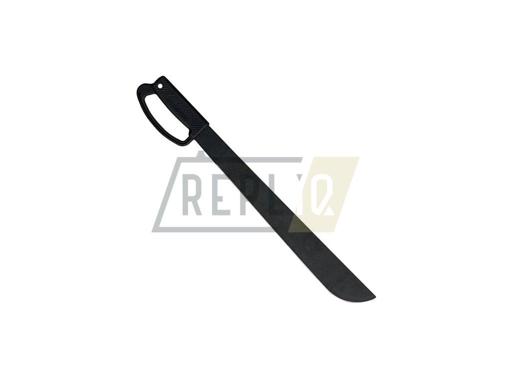 Mačeta s čepelí z černěné oceli s plastovou rukojetí.