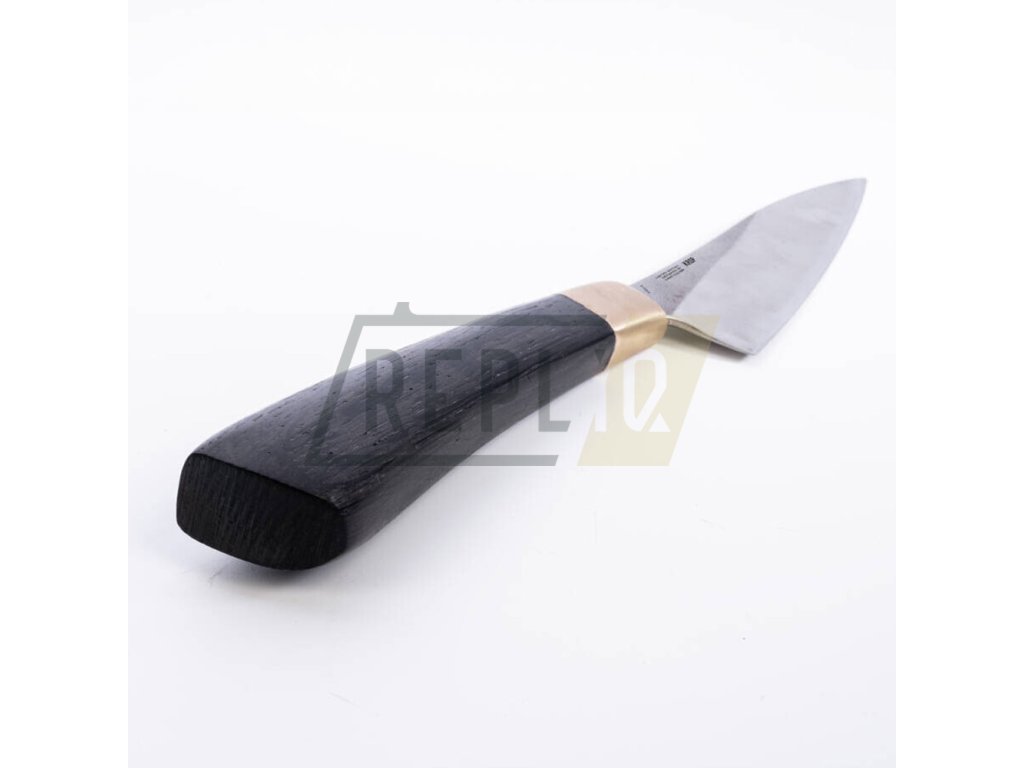 Rukojeť je vyrobena z fosilizovaného dřeva 1500 let starého vodního dubu a doplněna mosazným bolstrem. Ten s časem získá jedinečnou patinu, která mu dodá elegantní, lehce ošuntělý a starožitný vzhled. Nůž tak s postupem let získá osobitý charakter a stane se vaším věrným společníkem, jako starý přítel.