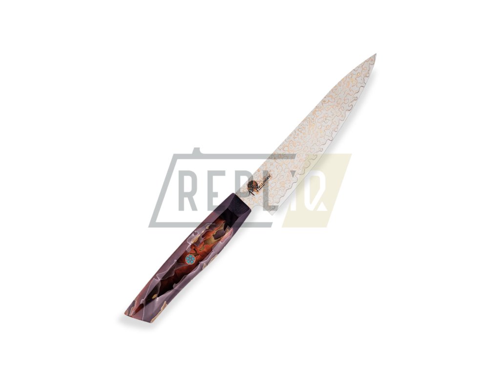 Upozornění Každý nůž je vyroben z přírodních materiálů. Každý kus oceli je originální a nenapodobitelný, proto Váš nůž nemusí vypadat přesně tak jak na fotografii. Nůž, který obdržíte, bude stejně kvalitní a detailně opracovaný, ale může se mírně lišit. |