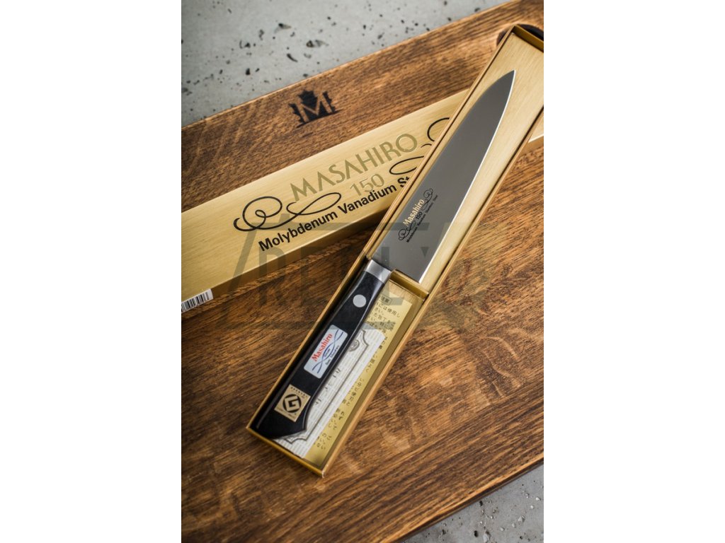 Masahiro MV Utility s délkou čepele 150 mm je univerzální nůž, který je menší verzí kuchařského nože. Díky svému všestrannému využití, které se osvědčí všude tam, kde je kuchařský nůž příliš velký, je nepostradatelnou součástí kuchyňského vybavení.