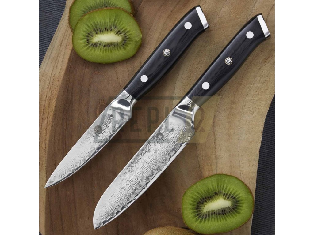 Rukojeť je vyrobena z materiálu G-10 a je zdobena středovým mozaikovým nýtem se znakem samurajů. Materiál G-10 je velmi atraktivní a hodně žádaný. Rukojeti jsou navrženy tak, aby dokonale padly do ruky a poskytovaly pohodlí. Nože jsou dokonale vyvážené a zabraňují únavě rukou. Tím je zajištěna maximální kontrola a přesnost. Mají speciálně navržený tvar záštity pro asijský úchop nože.