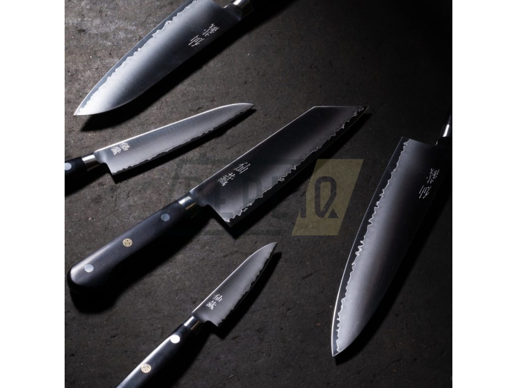 Jádro nože je z oceli SG2 (super gold 2), známé také jako R2 nebo SRS-2, která byla vyvinuta v Japonsku. Tato ocel patří mezi tzv. práškové oceli, což znamená, že je vyrobena z jemně mletého prášku železa a uhlíku. SG2 je považována za jednu z nejlepších ocelí pro výrobu nožů na světě. Ocel SG2 je známá svou vynikající kombinací tvrdosti, odolnosti proti opotřebení a korozní odolnosti. Obsahuje přibližně 1,3 % uhlíku, což jí poskytuje vysokou tvrdost a zároveň zachovává dostatečnou pružnost. Ocel SG2 je legovaná přísadami jako chrom, molybden a vanad, které přispívají k jejímu vylepšenému výkonu. Nože vyrobené z oceli SG2 jsou obvykle ručně kované a mají vynikající ostří. Díky vysoké tvrdosti oceli je možné dosáhnout dlouhodobého udržení ostrosti, což je důležité pro každodenní používání nože. Tato ocel je také dobře odolná proti korozi, což znamená, že nože z SG2 jsou snadno udržovatelné a odolné vůči vlivům vlhkosti. Japonská ocel SG2 je oblíbená mezi profesionálními kuchaři. Její vysoká kvalita, výkon a estetická hodnota ji činí atraktivní volbou pro ty, kteří oceňují kvalitní nože. Nože vyrobené z oceli SG2 jsou obvykle dražší kvůli použití této vysoce kvalitní oceli a mnohdy ručnímu zpracování. Na obou stranách čepele je použita nerezová ocel odolná proti korozi. Výsledkem je krásný vlnovitý vzor (hamon) na ostří čepele, podobný jako u japonského samurajského meče.