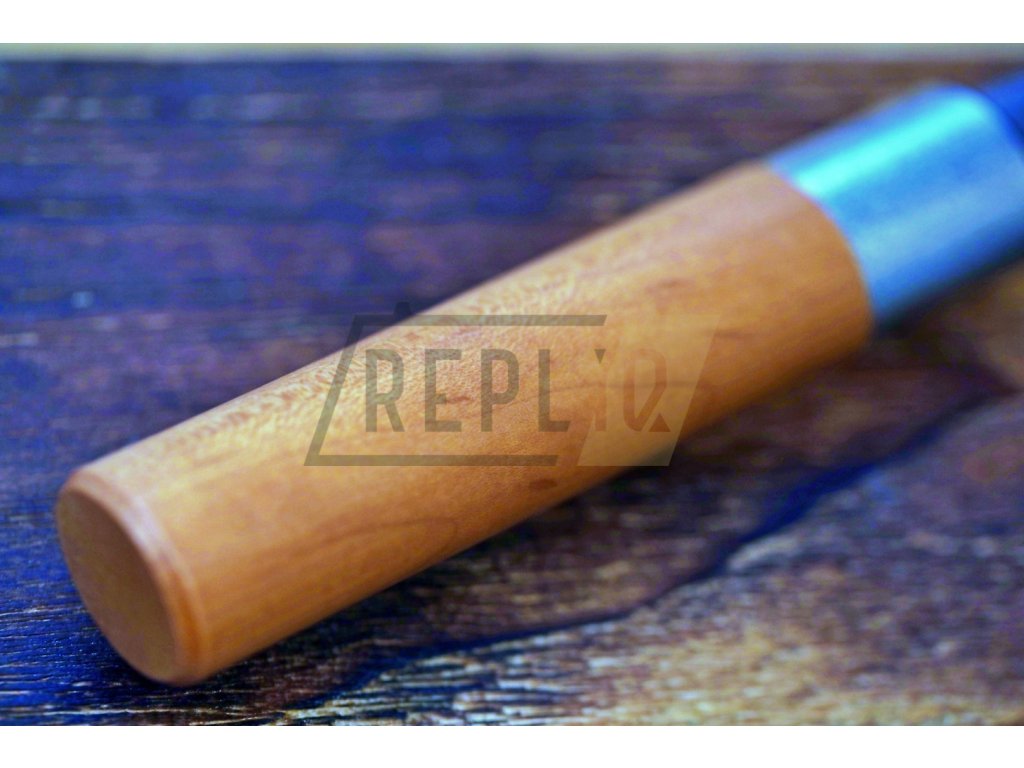Kulatá rukojeť je vyrobena ze dřeva magnolie a opatřena nerezovým bolsterem.
