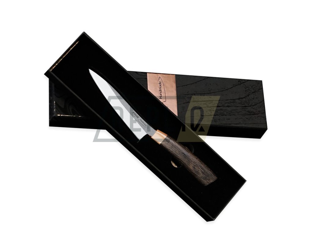 Rukojeť je vyrobena z fosilizovaného dřeva 1500 let starého vodního dubu a doplněna mosazným bolstrem. Ten s časem získá jedinečnou patinu, která mu dodá elegantní, lehce ošuntělý a starožitný vzhled. Nůž tak s postupem let získá osobitý charakter a stane se vaším věrným společníkem, jako starý přítel.