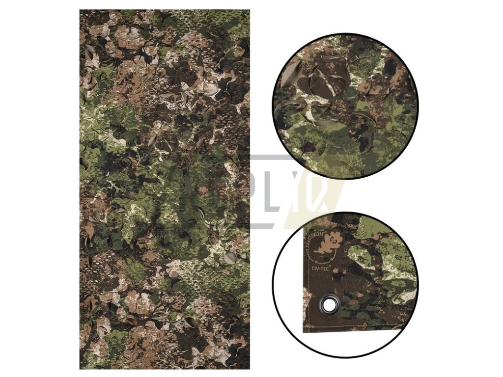 Lehká maskovací síť s laserem vyřezaným vzorem. Je vhodná k maskování vybavení, přístřešku či k stínění před sluncem. Na výrobu sítě byl použitý kvalitní Taslan (100% nylon tvarovaný stlačeným vzduchem), který nabízí nízkou hmotnost při zachování vysoké odolnosti. Pro snadné upevňování je síť v rozích opatřená kovovými očky.