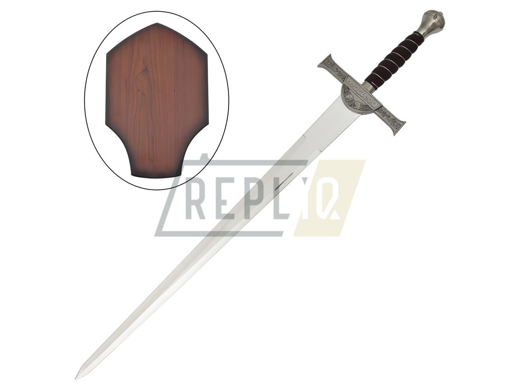 Součástí dodávky meče Highlander je také dřevěná plaketa na stěnu.