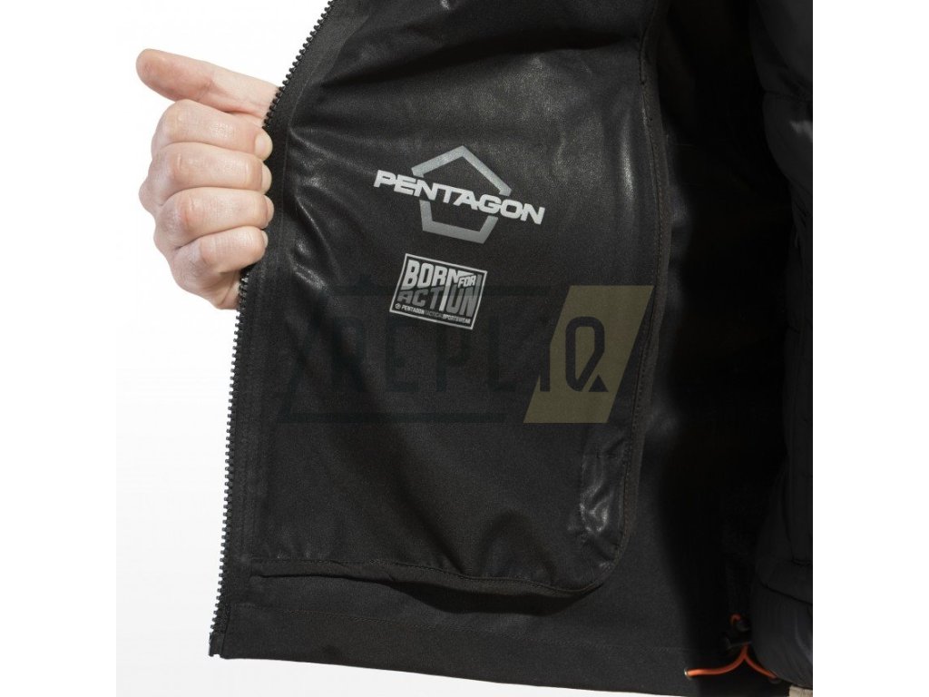 Pohodlná nepromokavá bunda vhodná na každodenní nošení. Na její výrobu byl použit polyester v kombinaci se spandexem, navíc je bunda opatřena TPU laminovanou membránou s vodním sloupcem 8000 mm, prodyšností 5000 gr/m2/24h a DWR (Durable Water Repellent) povrchovou úpravou. Švy bundy jsou třívrstvé a podšité jemnou gumou. Zapínání je řešeno dlouhým centrálním YKK® zipem chráněným vnitřní légou. Zip končí ve stojáčkovém límci s kapucí. Kapuce je prostorná a velikostně nastavitelná ve třech bodech. V podpaží naleznete ventilační otvory přístupné skrze dvoucestný zip. K uložení drobného vybavení jsou na bundě dvě hluboké kapsy zapínané zipem. Konce rukávů jsou nastavitelné pomocí suchého zipu.
