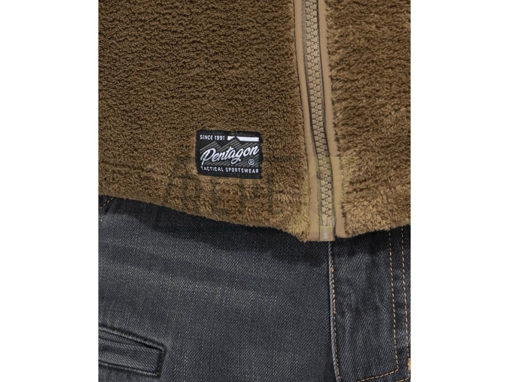 Zapínání mikiny je řešeno pomocí dlouhého středového YKK® zipu, který je v límci zakončen chráničem krku a vousů. Kapsy na ruce disponují širokými vstupy a je možné je uzavřít zipem. Hrudní kapsa je ze zesíleného materiálu a bez problémů pojme chytrý telefon či peněženku.