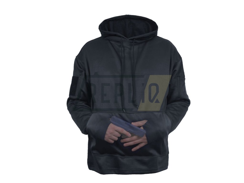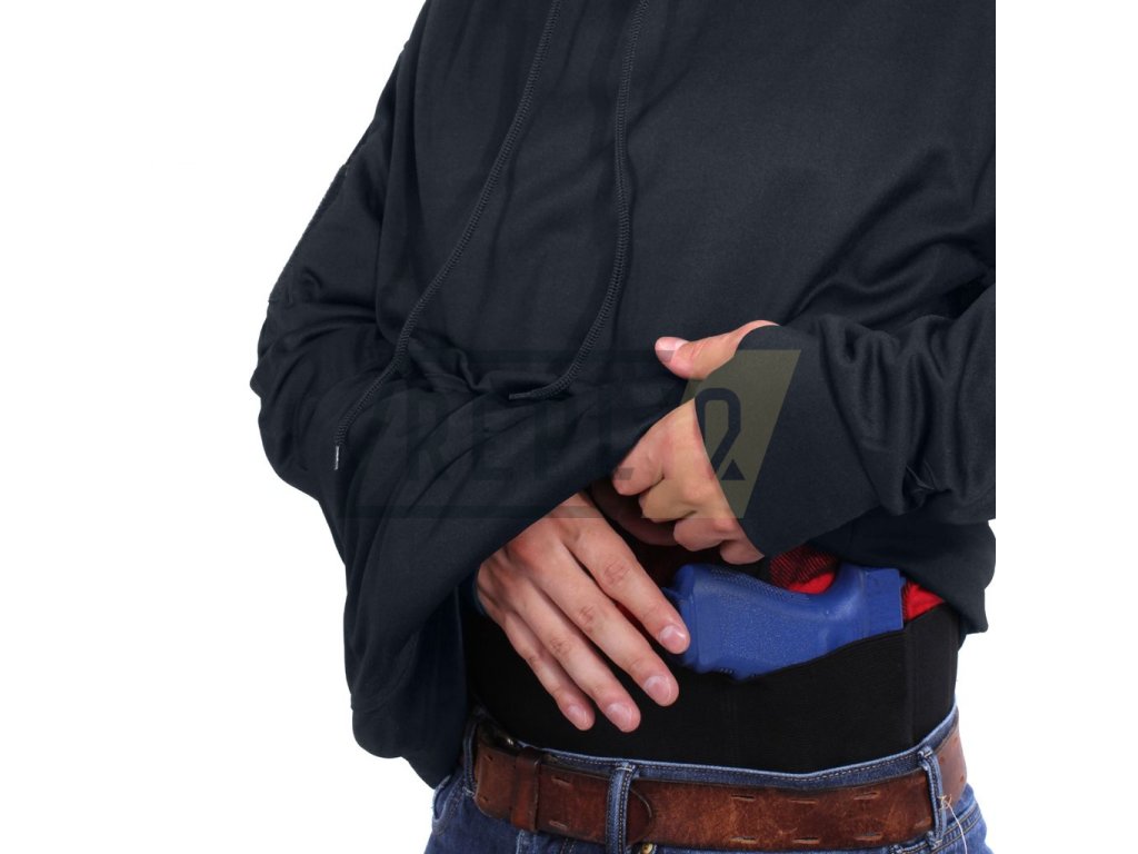 Taktická mikina s přední spojenou kapsou na ruce - tzv. klokanka, která je určená speciálně pro nositele krátké zbraně. To, co ji odlišuje od ostatních mikin, je otvor v přední kapse. V případě potřeby tak můžete nenápadně sáhnout po zbrani, kterou máte připevněnou na opasku a případný útočník to nemusí vůbec zaregistrovat.
