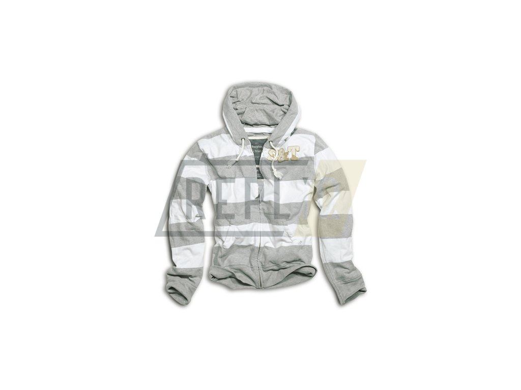 Mikina HENLEY s kapucí pruhovaná ŠEDOBÍLÁ