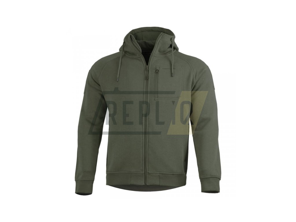 Mikina se zapíná pomocí středového zipu, který je v horní části zakončený chráničem krku. Kapsy na ruce, umístěné ve spodní části mikiny disponují širokými vstupy uzavíranými zipy. Hrudní kapsa, taktéž přístupná skrze zip, je vhodná na uložení drobné výbavy, chytrého telefonu či cenností. Tato kapsa navíc disponuje malým otvorem určeným k vedení kabelu od sluchátek. Rukávy jsou raglánového střihu a disponují suchými zipy pro vaše VELCRO nášivky. Kapuce mikiny je poměrně hluboká a lze ji stáhnout pomocí látkového tkalounu. Rukávy a lem mikiny jsou zakončeny elastickými náplety.