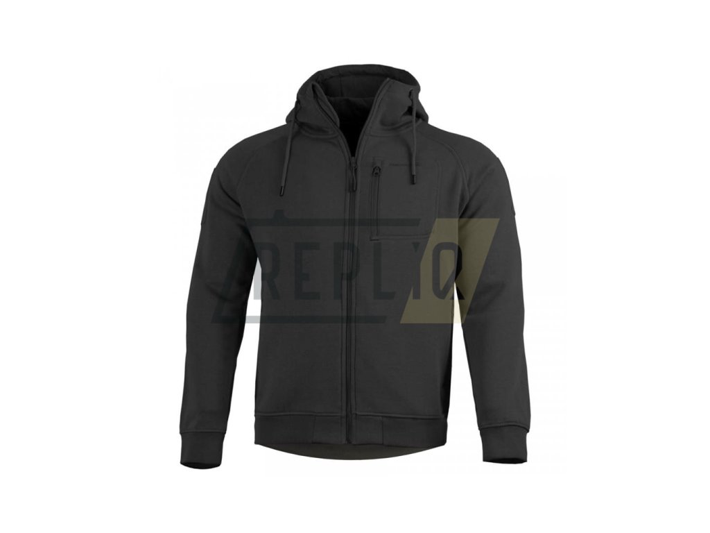 Mikina se zapíná pomocí středového zipu, který je v horní části zakončený chráničem krku. Kapsy na ruce, umístěné ve spodní části mikiny disponují širokými vstupy uzavíranými zipy. Hrudní kapsa, taktéž přístupná skrze zip, je vhodná na uložení drobné výbavy, chytrého telefonu či cenností. Tato kapsa navíc disponuje malým otvorem určeným k vedení kabelu od sluchátek. Rukávy jsou raglánového střihu a disponují suchými zipy pro vaše VELCRO nášivky. Kapuce mikiny je poměrně hluboká a lze ji stáhnout pomocí látkového tkalounu. Rukávy a lem mikiny jsou zakončeny elastickými náplety.