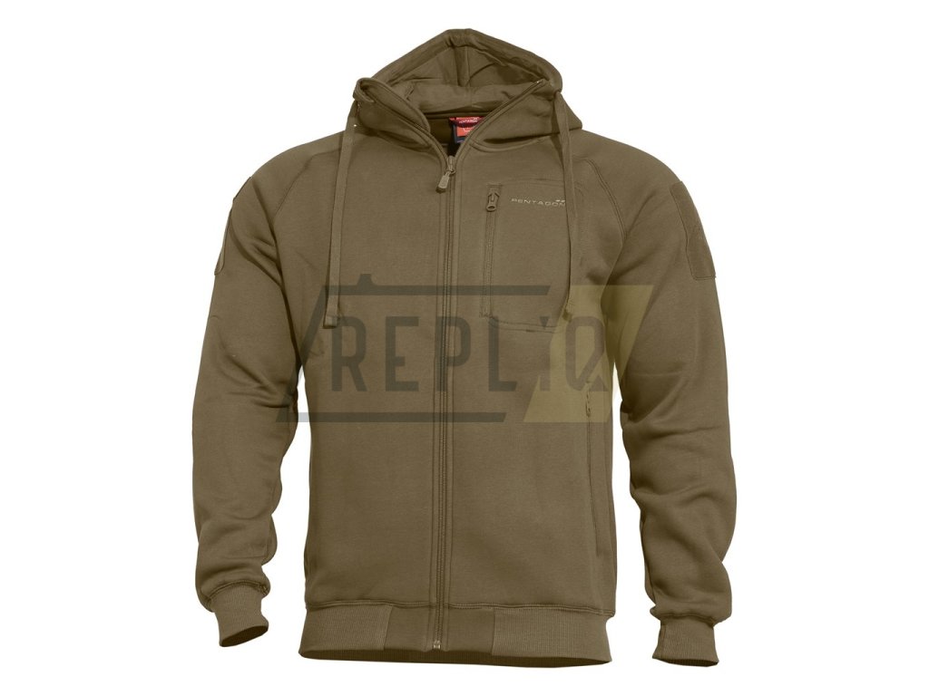 Mikina se zapíná pomocí středového zipu, který je v horní části zakončený chráničem krku. Kapsy na ruce, umístěné ve spodní části mikiny disponují širokými vstupy uzavíranými zipy. Hrudní kapsa, taktéž přístupná skrze zip, je vhodná na uložení drobné výbavy, chytrého telefonu či cenností. Tato kapsa navíc disponuje malým otvorem určeným k vedení kabelu od sluchátek. Rukávy jsou raglánového střihu a disponují suchými zipy pro vaše VELCRO nášivky. Kapuce mikiny je poměrně hluboká a lze ji stáhnout pomocí látkového tkalounu. Rukávy a lem mikiny jsou zakončeny elastickými náplety.