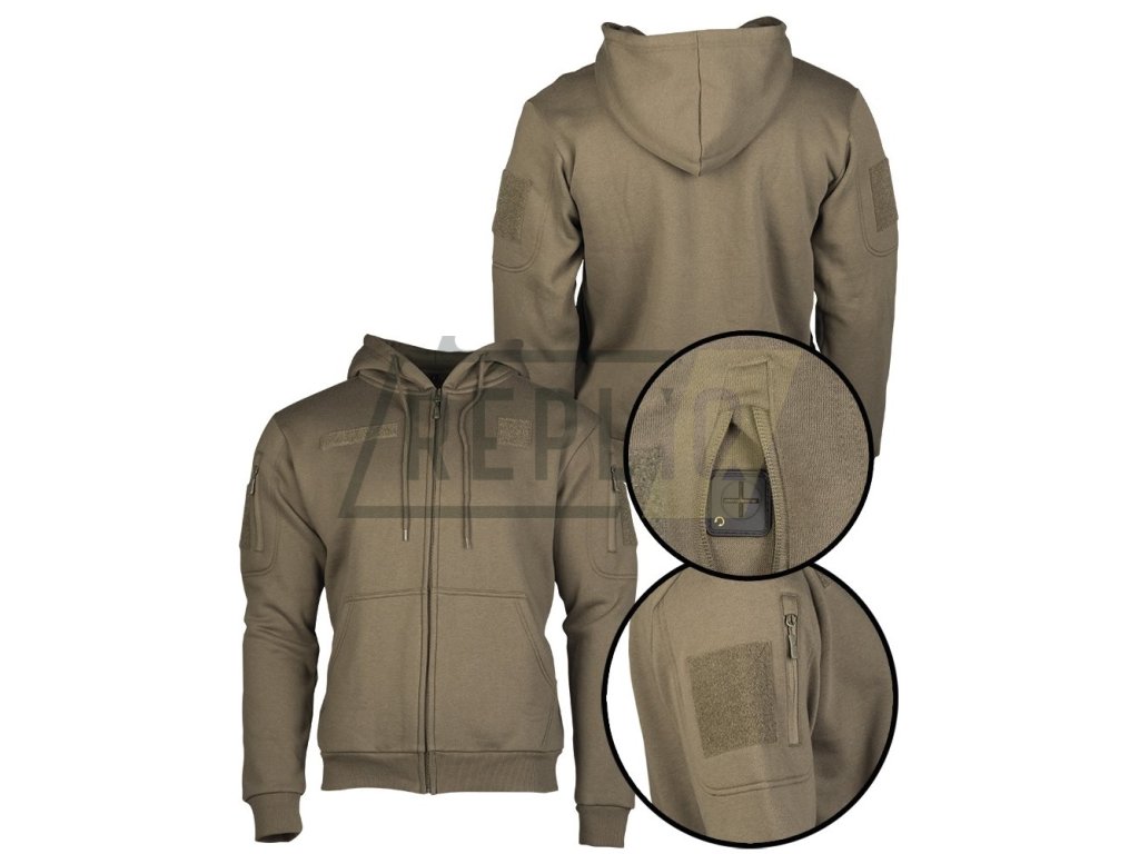 Pohodlná sportovní mikina se zapínáním na zip a velcro panely pro nášivky na zadní straně se suchým zipem. Vnitřní strana z příjemného měkkého a hřejivého materiálu.
