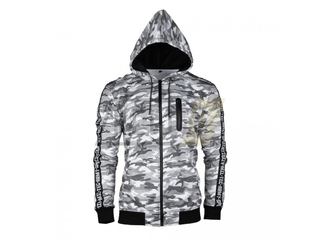 Lehká a pohodlná mikina s kapucí v kamufláži METRO URBAN od německého výrobce MIL-TEC. Mikina se zapíná pomocí vodotěsného zipu, má velikostně nastavitelnou kapuci a jednu hrudní kapsu, která se nachází nalevo od centrálního zipu. Mikina má na obou rukávech pruhy s vytištěným logem výrobce.