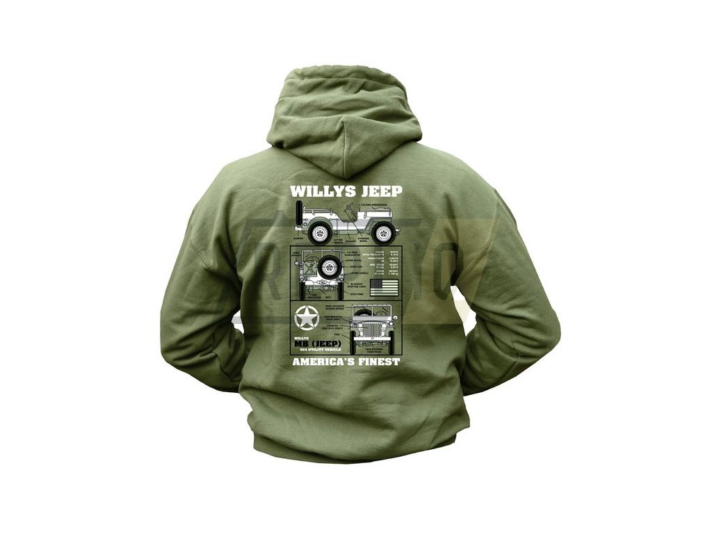 Mikina WILLYS JEEP s kapucí ZELENÁ