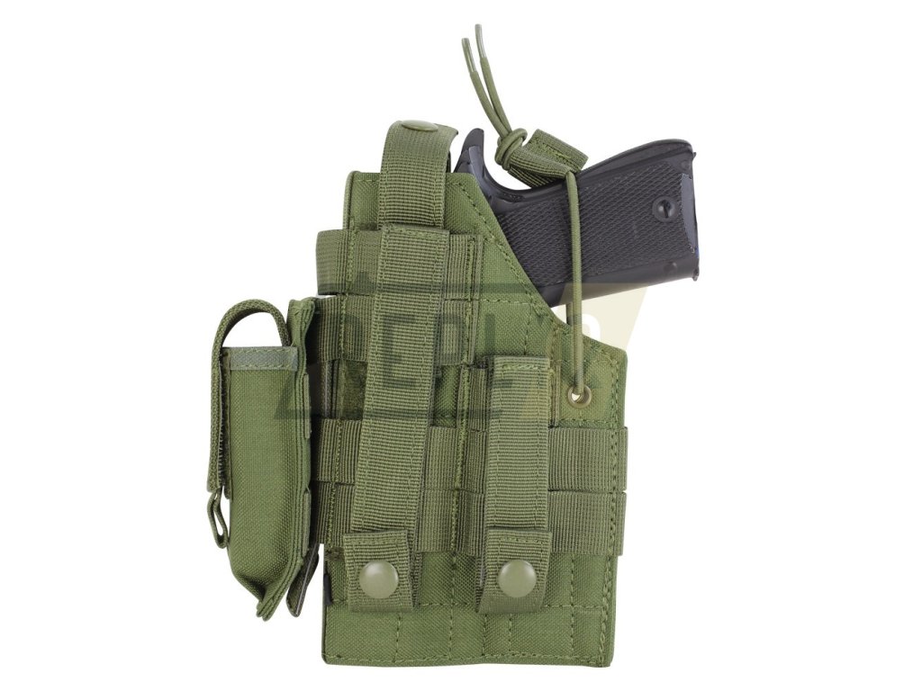 Pouzdro na 1911 pro připevnění na MOLLE systém, lze na pravou i levou stranu. Zajištění zbraně pomocí pásku se zapínáním na patentku a elastické šňůry. Samostatná odepínací sumka na zásobník.