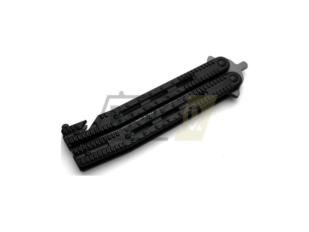 Kovový zavírací nůž, tzv. motýlek s tanto čepelí a šedým titanovým povrchem. Otevřete ho (nebo zavřete) jednoduše překlopením dvoudílné rukojeti a zajistíte pojistkou na konci rukojeti. V rukojeti jsou podlouhlé otvory a drážky proti vyklouznutí nože z ruky. V zavřeném stavu je na konci rukojeti hrot na rozbíjení skla, z druhé strany řezač popruhů. Součástí balení je nylonové pouzdro.