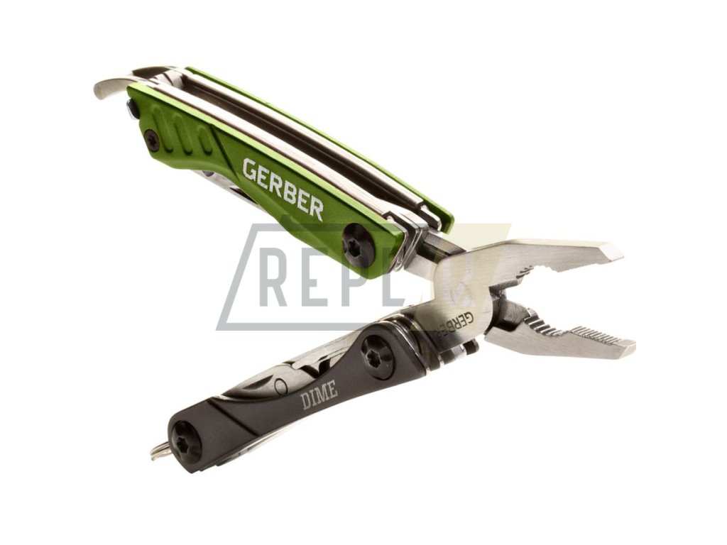 GERBER Kleště multifunkční DIME GREEN, kompaktní a lehké multifunkční kleště MULTI-TOOL s celkem 10 nástroji od amerického výrobce Gerber.