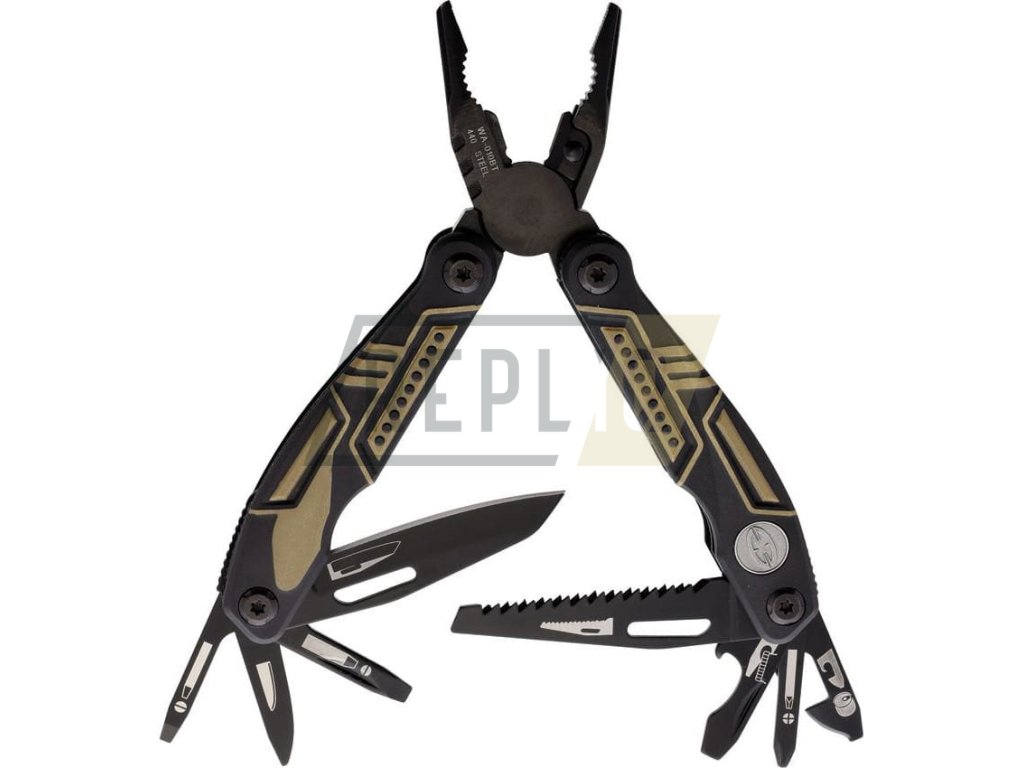 Praktické multifunkční kleště vyrobené z odolné nerezové oceli 440. Rukojeť je pro lepší úchop pogumovaná. Dodáváno s praktickým nylonovým pouzdrem.