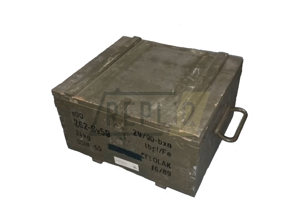 Dřevěná bedna s víkem. Použitá od nábojů nebo granátů.