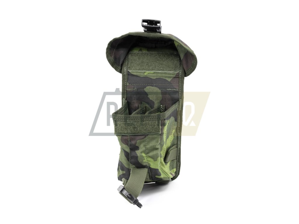 Sumka pro tři zásobníky pušky M-4/16. Zásobníky se umísťují vedle sebe na výšku. Zajištění klopou s fastex sponou. Uchycení pomocí MOLLE systému NPP-2006. Rozměry cca: 22 x 11 x 9 cm. Skladová uloženka AČR. Výrobce: SPM Liberec.