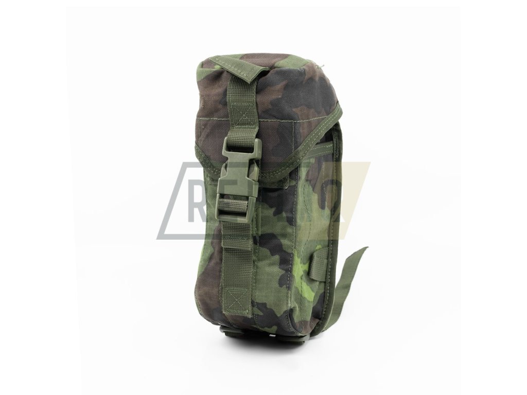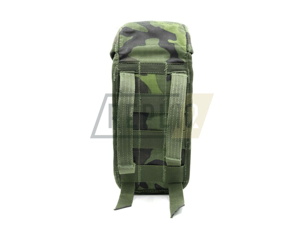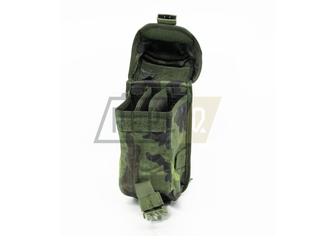 Sumka pro tři zásobníky samopalu SA58. Zásobníky se umísťují vedle sebe na výšku. Zajištění klopou s fastex sponou. Uchycení pomocí MOLLE systému NPP-2006. Použité - výprodej armády ČR, v dobrém stavu nepoškozeno.