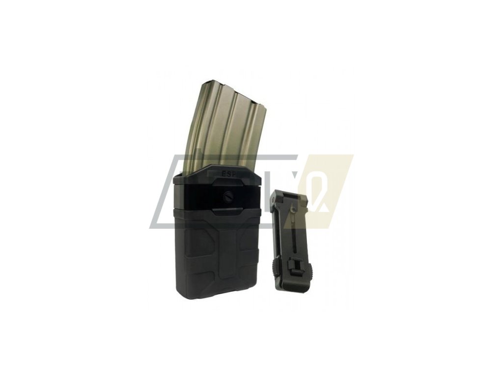 Univerzální, rotační pouzdro v samosvorném provedení je určen pro nošení naprosté většiny kokových i plastových zásobníků ráže 5.56 do zbraní AR15/M16/M4. Fixační pružina umožňuje rychlé vyjmutí zásobníku při bojovém přebití. Pomocí vymezovacích podložek si můžete sami nastavit požadovanou přítlačnou sílu zásobníku. Toto pouzdro, díky využití i pro zásobníky většiny pušek ve standardu NATO, ocení střelci, policisté i vojáci konajíci službu. Samotné pouzdro je vyrobeno z kvalitního, pevného plastu.