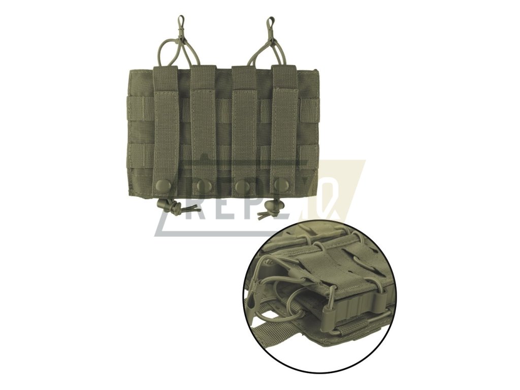 Univerzální polyesterová sumka disponující systémem elastických šňůrek, které umožňují nastavit velikost sumky podle velikosti vkládaného zásobníku. Sumka je po stranách zesílená a v její horní části se nachází elastická šňůra, pomocí které zásobník snadno zafixujete. Díky kompatibilitě se systémem MOLLE/PALS lze připevnit na velké množství vybavení.