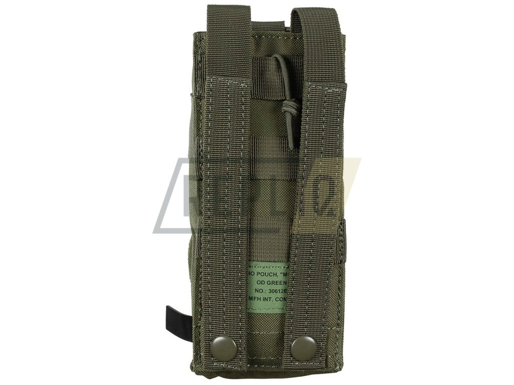 Pouzdro na vysílačku pro připojení k MOLLE. Zapínání na plastovou sponu. Rozměr: 9 x 5 x 20 cm. Materiál 100 % polyester.