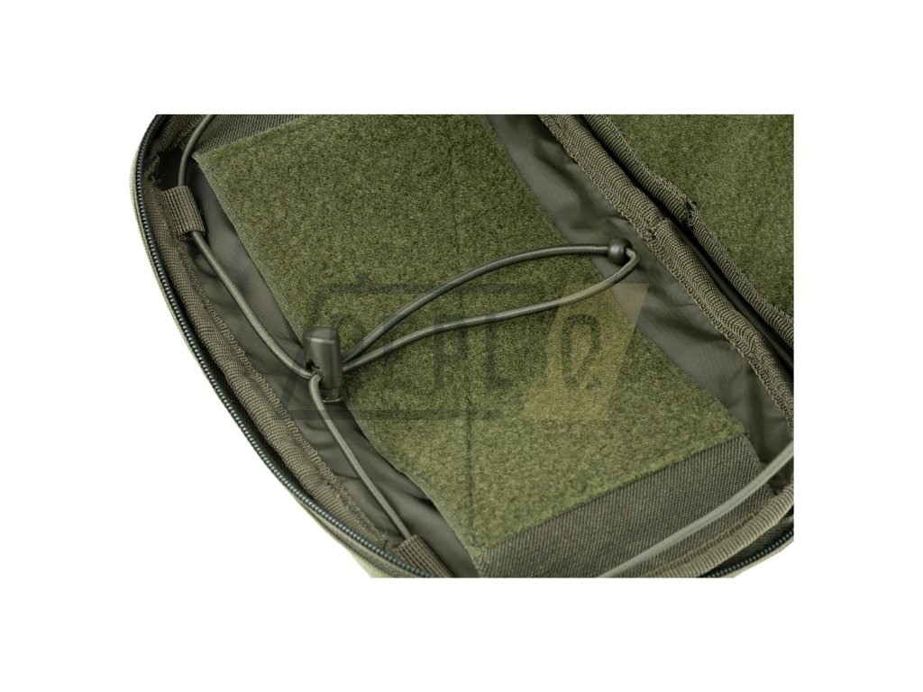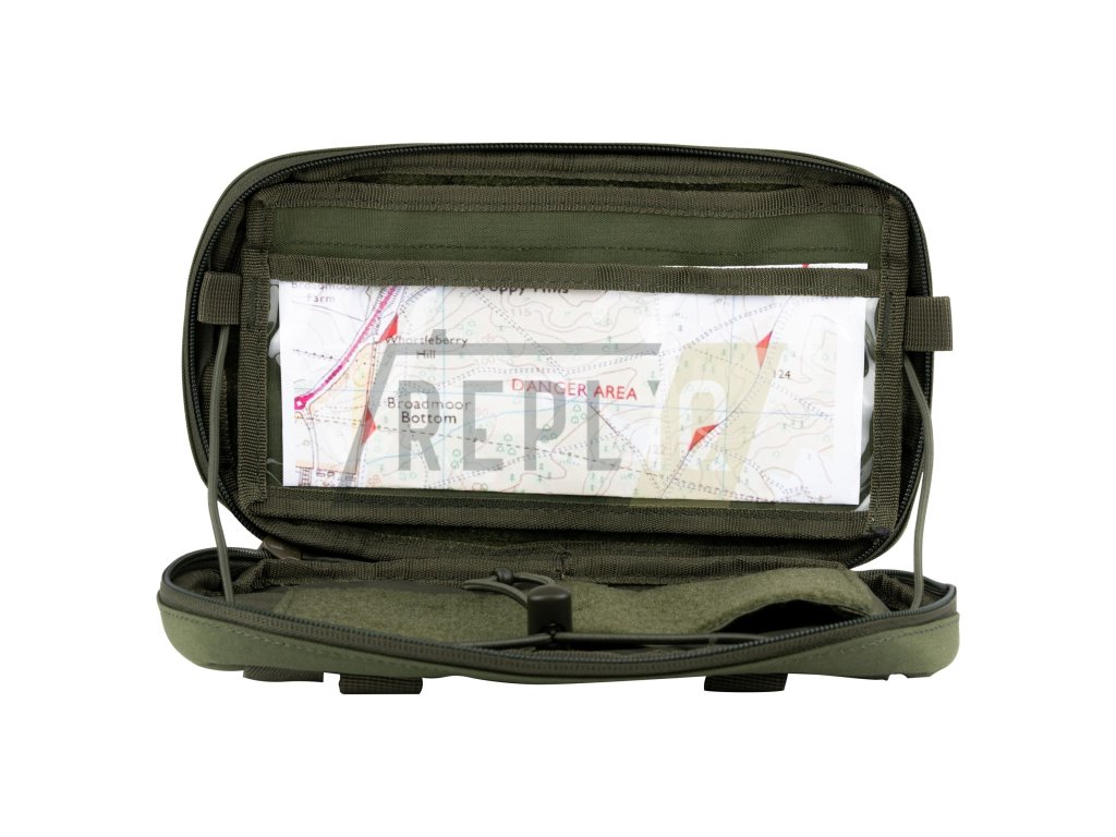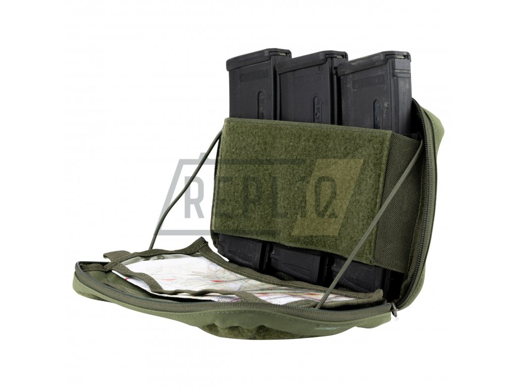 Na přední straně pouzdra naleznete laserem vyřezávanou MOLLE/PALS vazbou pokrytou suchým zipem. Zadní strana disponuje dvěma řadami modulární vazby a dvěma vertikálními pásky zapínanými druky. Tyto pásky slouží k jednoduchému připevnění k výbavě. Hlavní oddělení pouzdra, které je přístupné skrze dvoucestný zip, je zevnitř pokryté suchým zipem a je tedy kompatibilní s VELCRO sumkami na zásobníky. K pouzdru je dodávána vnitřní oddělitelná chopeň ideální na vložení mapy či dokladů. Ta je opatřená slídovým okénkem. Pouzdro se dá pro lepší manipulaci fixovat dvěma bočními provázky.