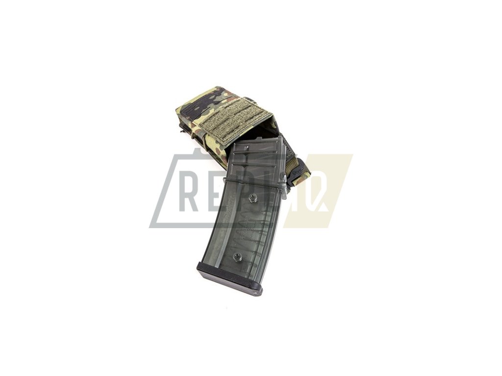 SNAP GRIP® - jednoduché otevírání v rukavicích a hmatová identifikace pouzder s různými typy munice. Odnímatelná chlopeň se suchým zipem je přichycena k sumce kydexovými sponami. Laserem řezaná MOLLE vazba pro uchycení dalších pouzder (pistolový zásobník, multi-tool, svítilna, etc.). Skládané dno umožňuje odvod vody. Sumka se navazuje pomocí dvou MOLLE popruhů a systémem Back-Flip.
