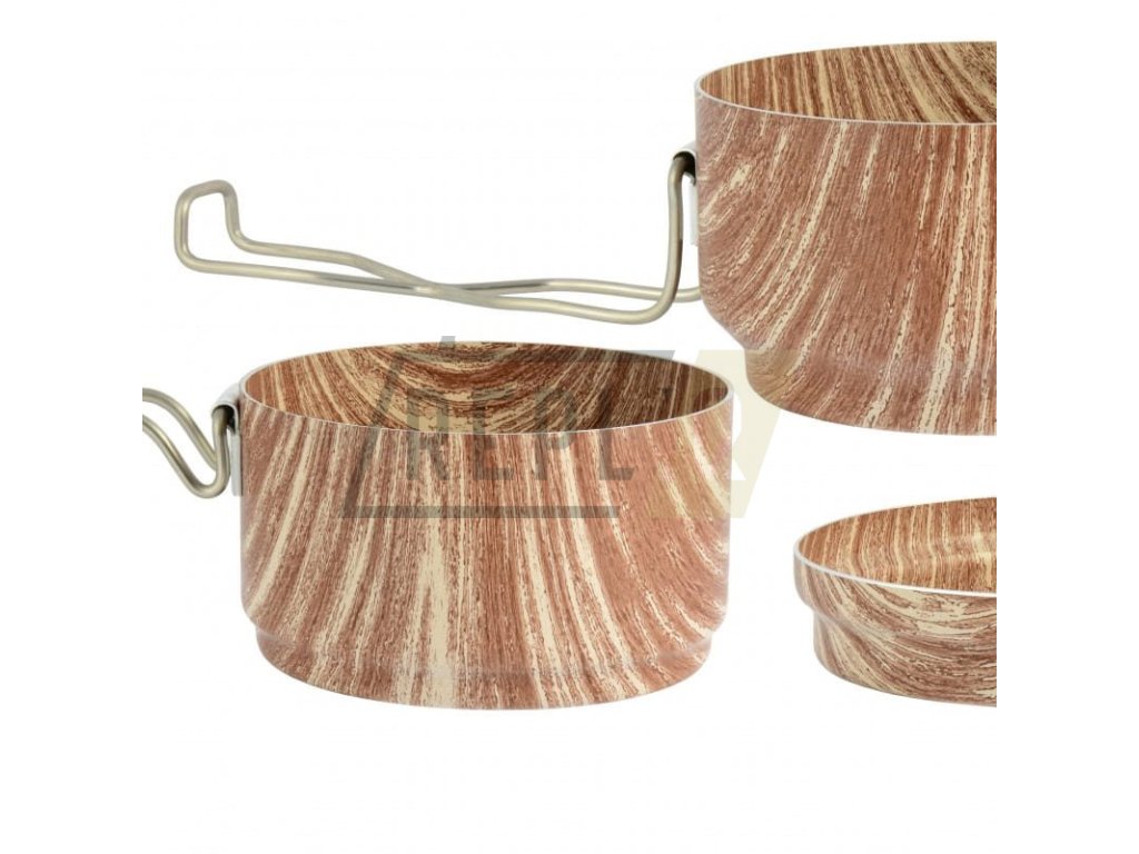 Klasické, generacemi prověřené nádobí z hliníku nově v teflonové úpravě PTFE v dřevěném designu. Hlavní a nezpochybnitelnou předností PTFE je nenáročná údržba a pohodlné vaření – pokrm se snadno připraví a nepřipaluje.