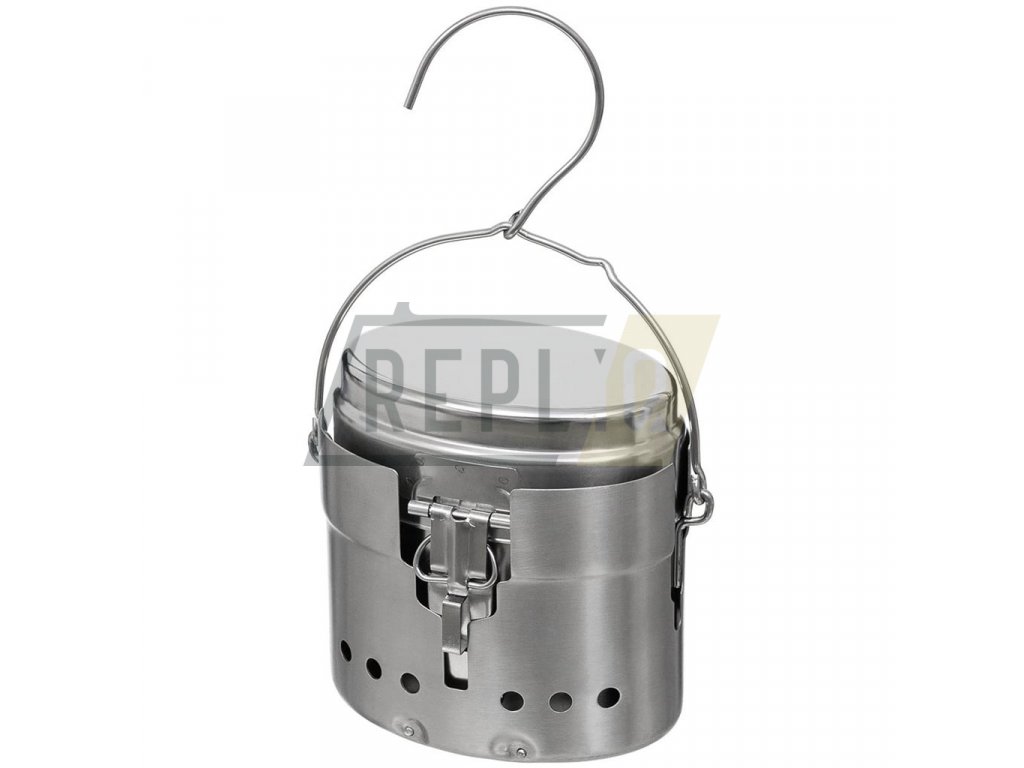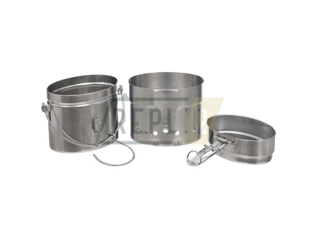 Odolná sada na vaření, která se díky své skladnosti hodí pro pobyt v přírodě. Produkt konstrukčně vychází z klasických švédských armádních setů na vaření. Na jeho výrobu byla použita kvalitní nerezová ocel potravinářské jakosti. Set se skládá ze stojanu/závětří, pánvičky opatřené rukojetí s D kroužky a hrnce.