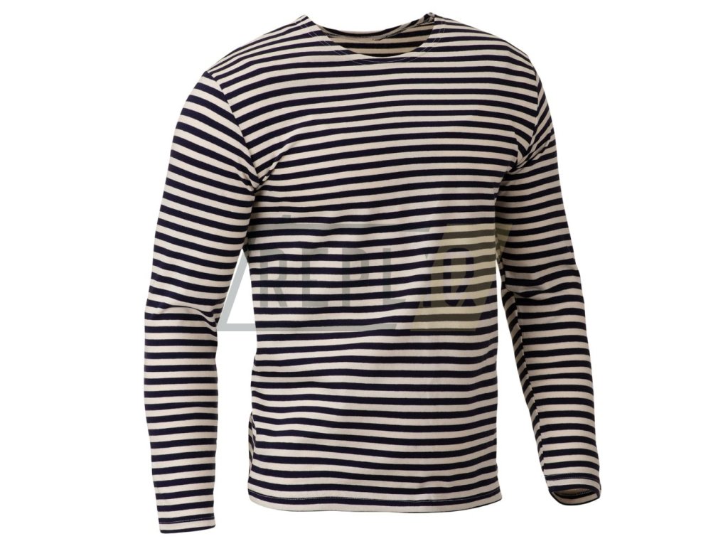 Pruhované námořnické tričko s dlouhým rukávem v tmavě modré barvě proužku. Toto barevné provedení nosí v ruské armádě příslušníci námořnictva a námořní pěchoty. Nepostradatelný doplněk pro vodáky, jachtaře a námořníky.