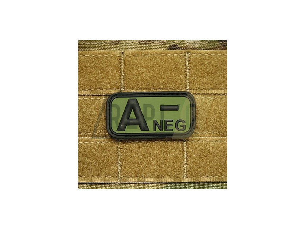 Plastová nášivka s označením krevní skupiny. Rozměr cca 5 x 2,5 cm, na rubu se suchým zipem.