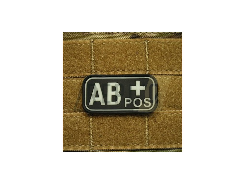 Plastová nášivka s označením krevní skupiny. Rozměr cca 5 x 2,5 cm, na rubu se suchým zipem.