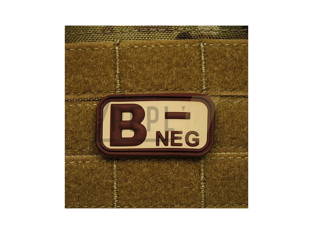 Plastová nášivka s označením krevní skupiny. Rozměr cca 5 x 2,5 cm, na rubu se suchým zipem.