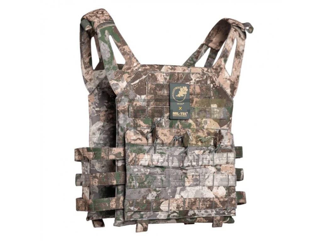 Nízkoprofilový nosič plátů od známé značky Mil-Tex vyrobený z polyesteru. Vesta je na boích, přední i zadní straně pokrytá MOLLE/PALS vazbou, takže není žádným problémem ji ověsit svým vlastním kompatibilním vybavením. Na přední straně také najdete tři sumky na zásobníky, které jsou následně jištěny elastickou gumičkou a tři VELCRO panely na vaše nášivky.