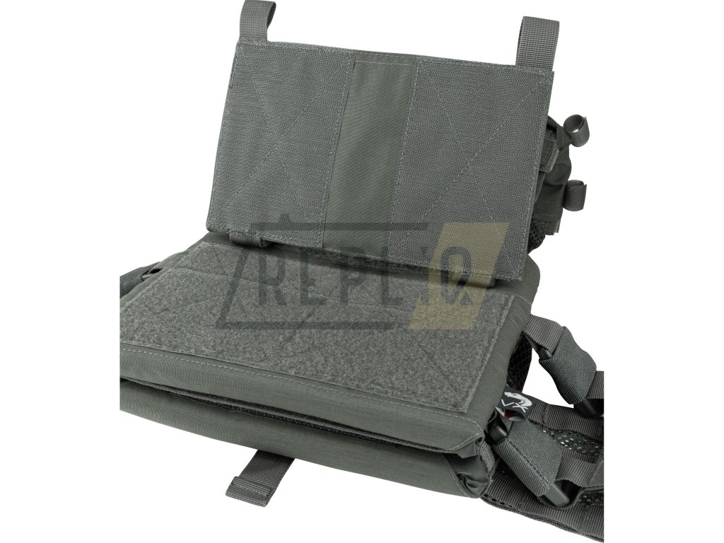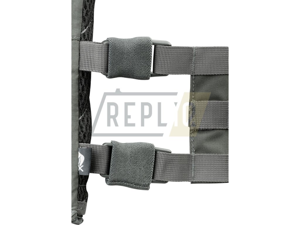 Přední i zadní strana nosiče je pokrytá MOLLE/PALS vazbou, která vám umožní připevnit řadu kompatibilního vybavení. Přední panel vazby se v případě potřeby dá nahradit, popřípadě odejmout a nepoužívat. Nad předníMOLLE vazbou se nachází VELCRO panel pro vaše nášivky a malá plochá administrační kapsa vhodná na menší dokumenty. Další možností jak připevnit doplňkové vybavení pak nabízí FASTEX přezky kompatibilní se systémem VX.