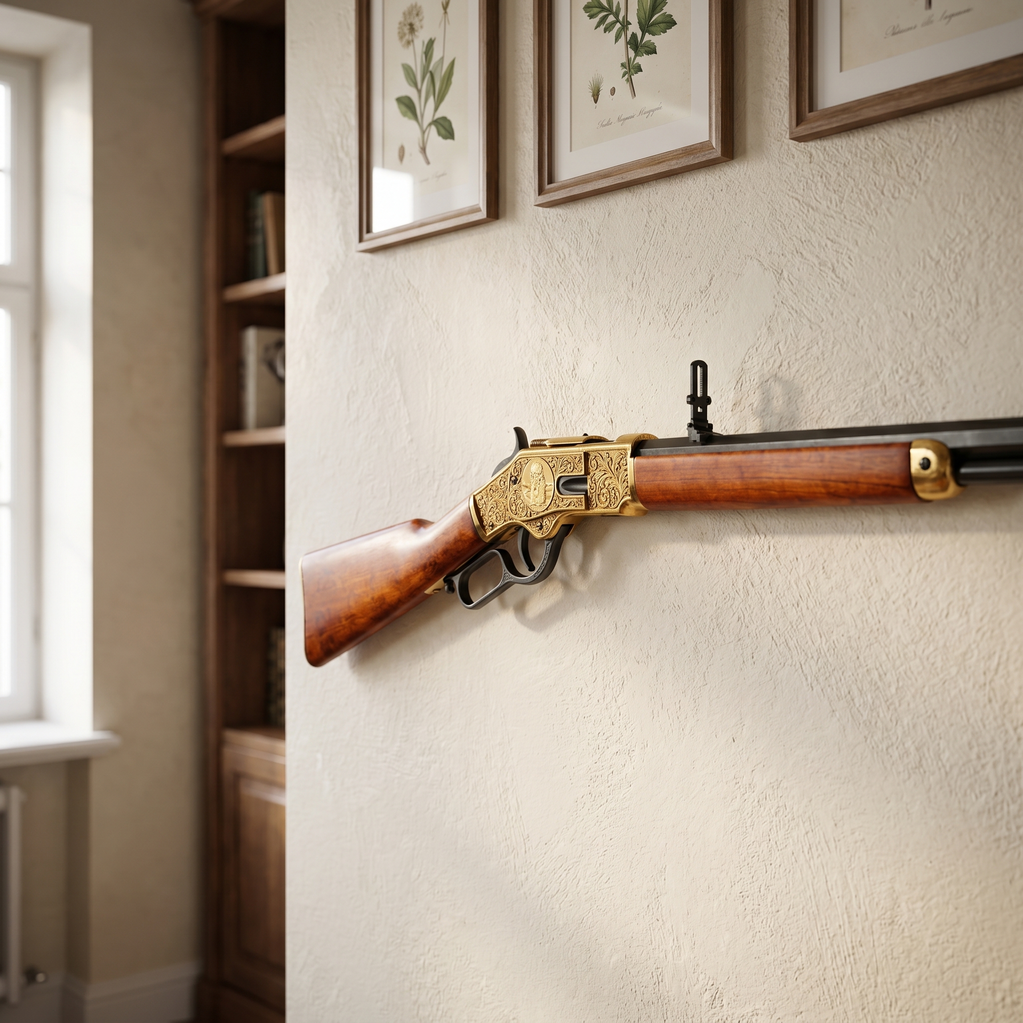 Tato puška velmi dobře vynikne na stojanu nebo nástěnném držáku spolu s dalšími westernovými replikami. Pokud ji vystavíte v pracovně, herně nebo sběratelské místnosti, snadno vytvoří atmosféru amerického Divokého západu.