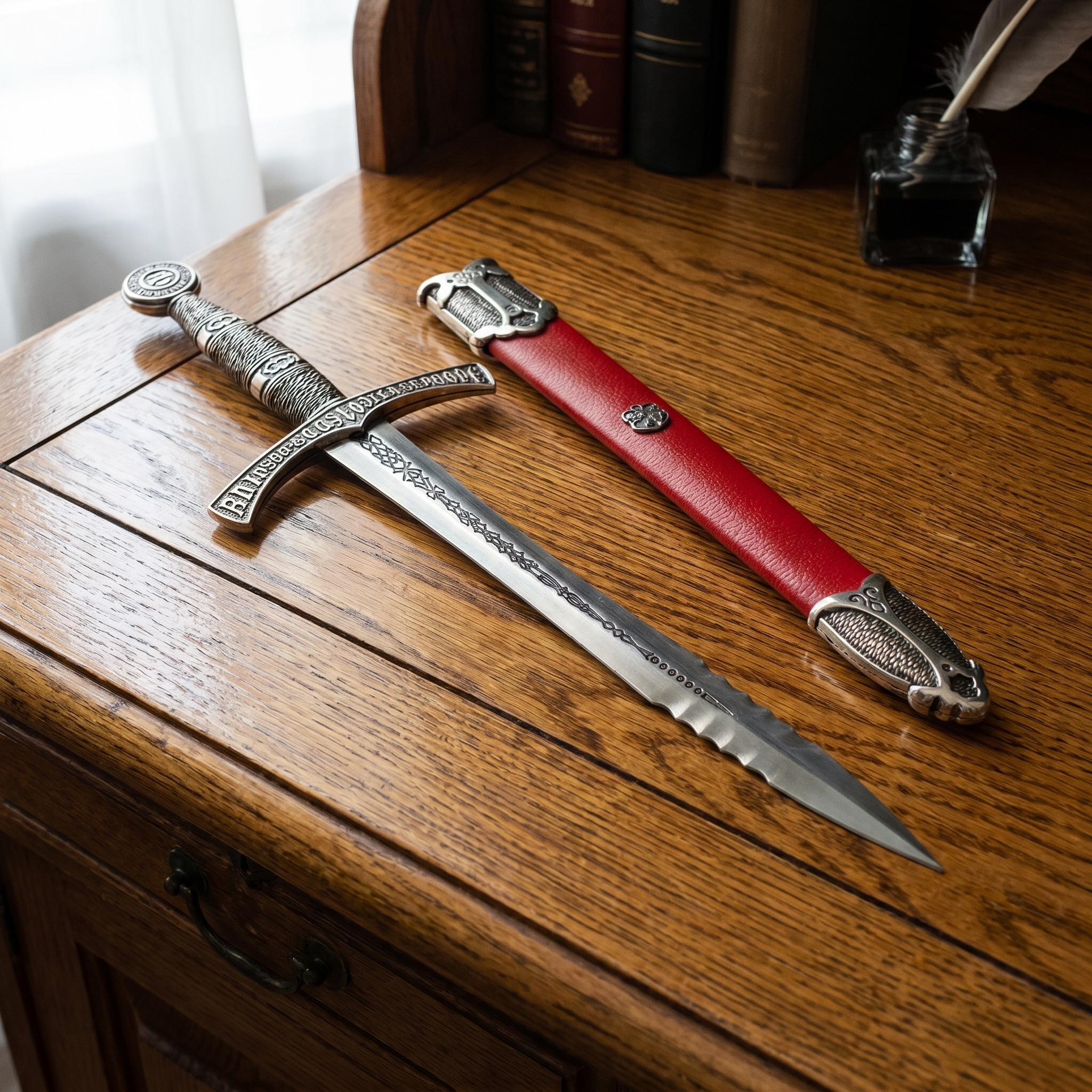 Tato dýka velmi dobře vynikne ve vitríně společně s dalšími středověkými replikami. Pokud ji vystavíte na menším stojanu v pracovně nebo sběratelské místnosti, snadno podtrhnete její historický charakter i atmosféru evropského středověku.