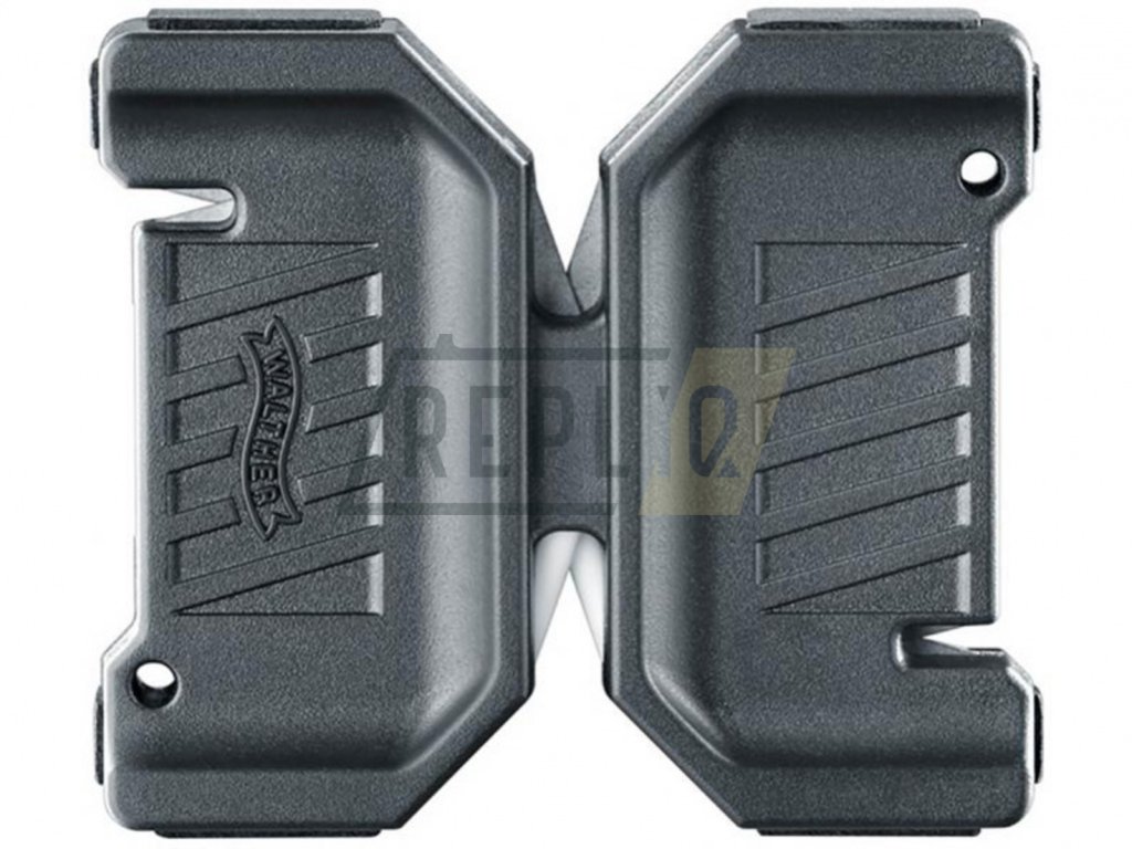 Karbidové destičky v hrubém, tmavém zářezu slouží k základnímu ostření. Keramické vložky v jemném, bílém zářezu slouží k leštění čepele a jejím navrácení na původní lesk.